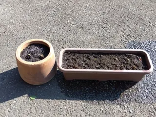 チューリップ🌷球根を植えました 以前カミンさんから頂いたチューリップ🌷の球根をやっと植えることが出来した😊左には白とパープルを植え、横長の鉢には赤、ピンクが咲く予定です😉💕🎵