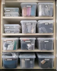 マスキングテープDIY【ハンドメイド資材の整理】 BOX棚をプチリメイクしました🔨廃棄しようとしてたBOX棚がいくつかあり、そのひとつの棚板を、別のBOXに"追い棚板"したら、ケースがシンデレラフィット✨✨使いやすくなって、重宝してます☺️💕 …けど、私の最近の悩みを聞いてください😢この棚を作った当時から数年経ち、文字がボヤけて見えなくな