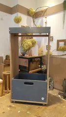 WS ペットウェアドレッサー ワークショップで、ペットウェアドレッサーを作ってきました。色は、ウォルナットと薄塗りのアイアンブルー。ステンシルは、初めてだったので控えめに。ウェアは防寒用くらいしかないのですが、BOXには、ペットシーツを入れました。