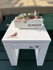図工室風椅子 カインズワークショップで 図工室風椅子を作りました! 椅子として活用しようと思っていましたが 素敵な花束をいただいたので とりあえず、置いてみました💐