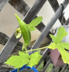 最後のさいご ペットボトルで作ったオクラ。涼しくなってから咲いた花から実りました。少し硬いかも?でも食べてみようと思います😊今年もありがとうの気持ちで。