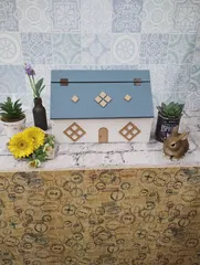 おうち型小物入れ 大利根店にて4棟目のおうち型小物入れつくりました!持ち込みミルクペイントで色塗りしました✨明日もまたお邪魔します🙇