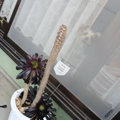 黒法師が突風に襲われました 昨年末のこと風が強くなってきたので避難させようと玄関を出た瞬間😱❕ 黒法師が無惨な姿に💧 応急措置でちぎれた部分を横に挿しました 今のところ大丈夫かな