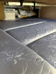 壁板を設置した事で後ろ左右の座面が収まらなくなり修正が必要でした。材料はそのまま流用の出来るので問題なしです。座面を全部外して行きます。↑針を外す前↑剥がしてウレタンスポンジとスポンジの状態を確認・・・問題なし! ↑この板は以前使用していた物をビスケットで繋ぎ合わせ使用しているのですが外れてしまい補