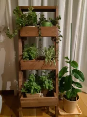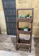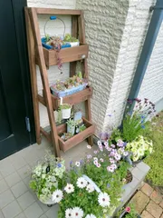 ボックス型3段シェルフ 先日作ったボックス型3段シェルフです。玄関先に多肉さんを飾りたくて🥰というのも、通りからよく見えるところにリメ缶の寄植えなどを置いていたのですが、最近こちらで色々お話をお聞きして防犯のために少し見ずらい位置に移動しました💦でもまだまだ増殖中なので置ききれないのよね💦🤣ワンポイント🥰中は通気性も兼ねて