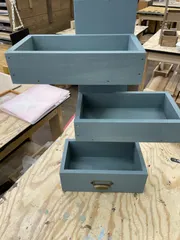 昨日のWSで作って来ました。午前中に色を塗り替えて、2段目、3段目のボックスの奥にい板を付けて収納スペースをアップさせました。実用性があって、もう一台あってもイイかも。