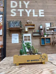 横長プランターとサボテン🌵の寄せ植え♪ 寄せ植え"に参加させて頂きました♪ほんと…久しぶりで,釘の仮止めとかのやり方を忘れてしまってて🤣 サイズが思ったよりも小さかったのであたふたしながらもなんとかプランターは完成❢サボテン🌵は最初に選ばせて頂きましたが…5個も選べて❢なかなか…迷いました(笑) 植え込む時に,何回も針