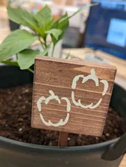 夏野菜プランター菜園ワークショップ(ピーマン) リモートの講師はサカタの種の方はじめてのピーマン😊✨ピーマンでかっ!!😳ジャンボピーマン😆✨やさいづくり日記とシール😊お持ち帰りは、支柱3本😊 ジャンボピーマンがたくさん採れたら良いな〜😆✨