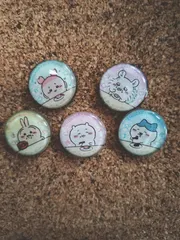 推し活ハンドメイド✨ だいぶ前にゲットしたちいかわ×くら寿司のビッくらポン。それに入ってるラインナップ紹介の紙をリメイクしましたー! ちょうどセリパト中に見つけたシリコンモールドがぴったりサイズだったので、押しピンにしてみました!…あ、標準語では画鋲か(笑) 穴開きタイプなので、穴部分のシリコンでべそ