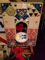 先月末の金曜日に大阪のタイルWSに参加して作った「mymirror」が今日の夕方に届きました。早速、玄関に置いてみました。薔薇は、誕生日プレゼントに頂きました✨この「mymirror」は7時間予定ですが、参加して作った人はほぼ9時間越えという大作で、前回参加した人は、朝10時から始めて終わりが午後8