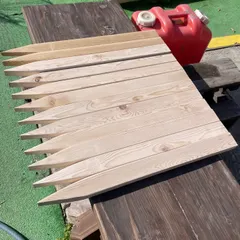 杭を12本作りました。 長さ500㍉位、厚さ20㍉位、幅40㍉位、塗装は追って。