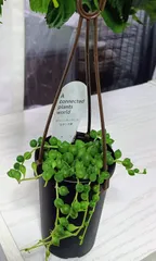 ピカピカ✨️のグリーンネックレスに出会いました。 グリーンネックレスとの相性が悪いのか買うたびに駄目にしてました。今回が3回目で失敗したら諦める予定でいます。安心感のある5号位のグリネに出会えず、入荷間もない小ポット植えに出会いました。綺麗で結構モリモリです。 持ち帰り、吊り鉢(インテリアポット)に植え替えました。それぞれに立派な根っこが