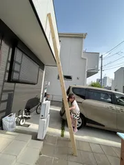屋根掛けハシゴを作りたい! 「あ〜屋根登りたいなぁ・・・ハシゴ作るかぁ」ということでハシゴを作ることにしましたっ 購入した時の写真撮り忘れたホムセンで2×4の3650mmくらいのやつを2本購入。踏みざん?は2×4の1820を2本購入。→写真は踏みざんを350mmでカットした写真ですっ