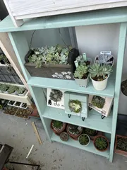 2個目❗️足場風3段ラック💕 もう1つ作りたいな〜っと言っていたら、丁度、仕事が休みの日に開催日があった! カラーも同じで木目の出るダスティーグリーン😊ほぼベランダのdiy作品は、白かダスティーグリーンにしてます。(片付かないなりの統一感を😅)ダスティーグリーンは超撥水なんで、水やりしても気にならない❣️素敵な塗料❣️