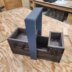 木材で両開きツールボックス ワークショップへ行ってきました🎶ビスがまっすぐに入らずお手伝いを沢山してもらっちゃいましたがなんとか出来上がりました😊アイアンブルーが無くなっちゃうということで取っ手はこの色にしました💙 一緒に参加した方からたくさんのナスをいただいたので今夜はナスとピーマンと豚ひき肉の味噌炒めにしました🍆