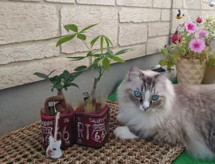 観葉植物 観葉植物をお迎えしたので玲虎と一緒に記念撮影✩.*˚🌿パキラとガジュマル🌳