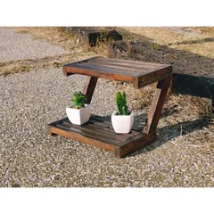 本日完成しましたアンティークを強調した観葉植物展示台です。 正面やや左より上部から塗装面拡大写真小型観葉植物展示台を仕上げました。 素材はオーク材フローリング18㍉ ミッチャクロン塗布の上にケヤキ調スプレーオールドウッドワックス アンティークグレーの二層塗りです。