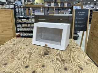 ★カフェ風ショーケース★ カフェ風ショーケース作って来ました✨思ってたより大きくて存在感あります😊所要時間通りに出来上がり‥満足😍❣️ 持ち帰ってから取っ手を付け替えました〜 以前に作ったキッチンストック棚と並べました🥰