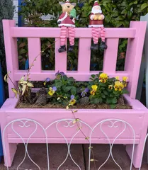ピンクに塗り替えたプランターにビオラを植えました✨✨