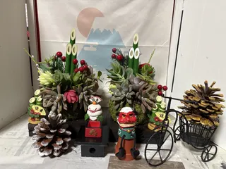 お正月飾り 多肉植物の門松 多肉が、ポロポロ落ちてきて、まとまりつかない😖多肉を追加しました。何とか形になりました😅苔玉が不安定なので、板を2枚貼り付けて、上1枚をホールソーで穴を開けて台を作りました。