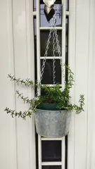 サックス色のロ−ズマリ−を玄関ドアに掛けました、中々良い感じ✨