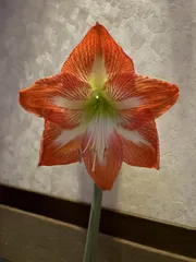 我が家のアマリリス 玄関でアマリリス咲きましたー最近は強風なのでお家に避難中誰かに見てもらいたいから投稿しましたー🤗🤗どうぞ見てやって下さい🙇♀️