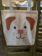 先月のイベントでB&Bのステンシルクッションカバーを作ってきました。イベントには2回参加し4個を作り、眺めているうちに『エコバッグみたいにしたら可愛いかも🤔💡』との思いつきから作ってみました!両脇を少し縫い込み縦長にし、底はマチありに。手提げ部分はお気に入りの生地で作りました。ラベルは後ろ側に縫い付