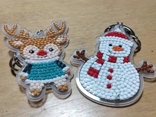 ダイヤモンドアートキーホルダーXmasです🎅 5日にワークショップでトナカイさん作成…雪だるま⛄️さんはキット持ち帰りお家で作りました…つぶつぶ残りいっぱい有るので何かアレンジして作りたいです✌️
