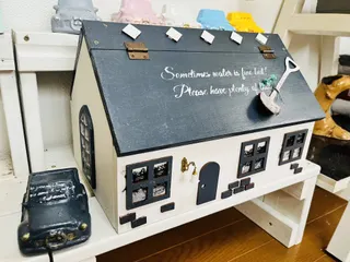 おうち型小物入れ🏡⋆* この作品は大好きで何個も欲しくなり作ってきました。3棟目の🏠は屋根がアイアンブルー💙壁は、決まって白🤍ちょっと気品漂うお家にしてみました。小窓から少しだけ見える黒のレースのカーテン…… なんかいやらしぃ🤣 まだ開催あったら予約入れて更に増やしたいです🏠お気に入り