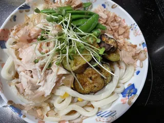 タネからのかいわれ大根の収穫🌱おめでとうございます🤩 彩りの綺麗なサラダうどん、美味しそうですね😋 今日は暑かったので、サラダうどん日和でしたね。