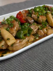 🍚も🍺も進む👍鶏モモの葱だくポン酢炒め煮 ■作品内容鶏モモのポン酢煮 ■こだわりポイント片栗粉を付けて焼くことでもも肉のジューシー&とろみを、両面を焼いてからきのこや野菜を入れることで程よいしんなり感、ほぼ肉に火が通った辺りでポン酢をいれる!葱は今回は万能葱を使用しましたが、九条ネギもお勧めです、葱は半量は一緒に炒め、残り