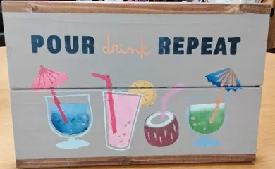 タイニーサインボードB&B今回は何度もおかわり🍹 昨日は午前隠せるごみ箱作りで午後タイニーサインボードでしたちょっと手抜きに成ってしまい2枚目ステンシルシートの細いライン仕上げがトホホ滲んでしまい失敗作細いラインは塗料ほんとに少なめでないとダメダメですねつい忘れてしまい❌️時間無かったり集中力ないとよく失敗です。さぁ失敗作どう直そうか…ペイント🎨🖌