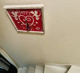 姫階段にピッタリなラブリーなデザイン❤️ 階段を真っ白に塗装して宮殿みたくしたらピッタリじゃん🤣と見つけたデザインに参加して、ココに飾るんだ👍✨って最初から決めてました😊やっぱりココ‼️ いつも階段を昇降の時はチラッと見ちゃいます✨✨✨ これ、確か……ホワイトデーに作って夫婦の4周年記念で作った作品です◡̈⃝︎⋆︎*