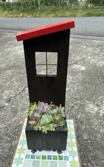 木工とGreenのコラボ企画 コラボ企画♡参加しました(^^)はじめて使う機械に、悪戦苦闘しながらも何とか、窓枠をクリ抜けました。 家にあった、セダムを隙間に追加♡早く根付いてほしいな〜