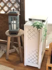 分別ペール♪ 先日の早引けWS作品、ようやく仕上がりました。蝶番をつける向き、よく確認したはずなのに間違えました〜やはり見ててくれる先生がいないと迷走〜まあ、出来上がったからよし!45Lゴミ袋がちょうどよく入りますね!ペットボトルの空きを入れるのに使おうかな。 ステンシル付きの作品なので他の参加者の作品