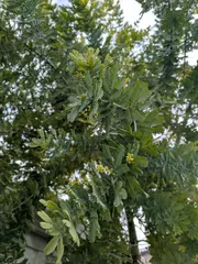 ミモザ 去年、植えてお花咲いてなかった。今年はミモザを見れそうです✨リース作れたらいいな😉👍