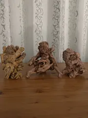 木の根っ子 庭で枯れたバラ、ナンテンの木の根っ子掘り起こし、捨てずに綺麗に磨いて、床の間に飾っています。ここまで成長して有難う!感謝の気持ちでいっぱいです。他にも、桜、梅など、大小、沢山作成しています。つまり、庭で枯れた木は全て綺麗に磨いて、飾っています。仕上がると気持ちが良いです。根っ子たちも、捨てられずに、