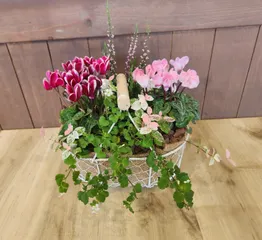 ガーデンシクラメンの寄せ植え ガーデンシクラメンの寄せ植え作って来ました✨シクラメンの色迷いましたがピンクと赤にしました💕ポイントシクラメンは他の花より1cm高く植える。カルーナとバコパは割りばしを使って葉を外に出す。アドバイザーさんのお陰で完成しました✨御一緒してくださった皆様お世話になりました🎶楽しい時間でした💖