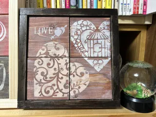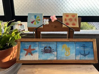 先日のコースターは、こちらでした↓このコースターを裏返して、自宅にあったステンシルシートで遊びました(上の写真)家事もやらず暇さえあれば遊んでばかり(反省😅)