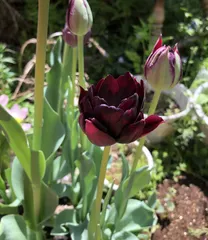 この春は いろんなチューリップ🌷が咲きました。 万年初心者なのもあってそこまで意識せずに「色違いかな?」くらいの認識で球根植え付けしましたが全部違う種類のチューリップが咲くとは😄 中でもこれが1番の私のお気に入り、深い紫色のチューリップです🌷