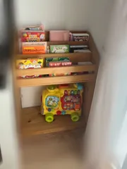 ブックシェルフ ■作品内容娘に頼まれて、孫の絵本を飾れるブックシェルフを作りました🙂 ■こだわりポイント薄め色希望だったのでスタッフさんに相談に乗ってもらいメープルを水で薄めてサッと拭き取りました。ネジ山で怪我しないようにとアドバイスいただいてしっかり打ち込みました。ヤスリも丁寧に頑張りました💪ワークショ