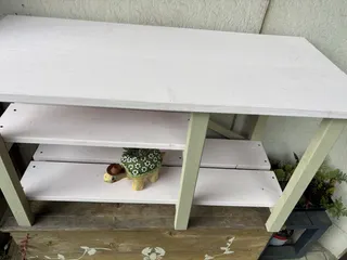 アイアン調テレビラック 新色のソフトピンクで天板、グレージュ脚を塗装しました 塗装に時間がかかり組立も大変でした スタッフの方のアドバイスで素敵に仕上がりました