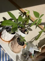 パキラの鉢植え替え 今日はお嫁ちゃんが休日出勤でまったりとしている私に向けた宿題を残して出勤して行きました。その宿題は、パキラの鉢の植え替えん?やったことねーし。笑YouTubeでちゃんと見てやってねとの事。単純に右から左に移すだけじゃないのね。右の鉢から少し大きめの左の鉢に移し替えます。小石を少し入れます。うん、楽勝
