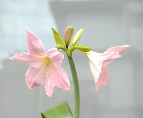 マジックアマリリスが咲きました マジックアマリリスは特殊な栽培方法を施されたもので最初は土も水も要らないとのこと (22年12月イベントの時に購入)なので1年目は空の容器に入れただけで開花しました23/3/25 翌年は土に植えればまた咲くということだったので鉢に植えてみたのですが失敗💦風が強かったので支柱を そ