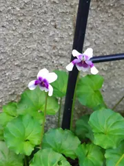 オーストラリア原産で「タスマニアンビオラ」「ツタスミレ」などの別名があるそうです。名前の由来は白に紫の模様がパンダを思わせるからということだけれど、そうかなあ?とちょっと疑問🤔でも、かわいいです💕花壇スペースに植えて4年霜や雪にも負けず生き続けています。ランナーで増えますが、先祖返りしたプミラに押さ