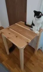 カフェ板で作るスクエアテーブル 浦和美園店のオリジナルWSで作ってきました🚙💨トリマーで木くずまみれになりながら😅天板をキレイ✨に削ることができました!😆🎶 ウレタンニスで仕上げるスタイルだったので、木目を活かしてシンプルでいい感じ☺️