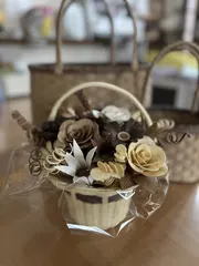 HAPPY BIRTHDAY🎂 お友達の誕生日🎂プレゼント🎁用にクラフトテープでアレンジフラワー💐を作ってプレゼント🎁しました✌️ 薔薇🌹、ガーベラ🌼、チューリップ🌷、ユーカリをアースカラーで作ったドライフラワー風にしました💕 お友達にとってこの一年が楽しいこといっぱい