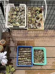 雨の自動給水笑🤭 ■作品内容葉挿しのトレイ数個で自動水やり。■工夫ポイント天からの恵みの雨も無駄にしない🤣雨は水道水と違ってミネラルも含まれているそうなので多肉ちゃんにも良いはず♡葉挿しの少量頻回の水やりにピッタリですね。 ※以下多肉ハック部門のみ入力■材料葉挿しトレイ■工程トレイを雨の当たるところへ10分