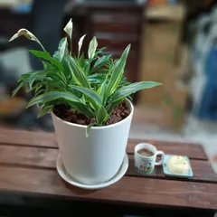 「夏のコーヒー時間【観葉植物の寄植えのお世話の後のコーヒータイム】」 毎朝霧吹きで水やりしてます。大きくな〜れ💞観葉植物のお世話しながらのコーヒータイム。お水のやり方でしょぼんとなったり、生き生きと元気になったり正直です。お花が沢山ついてるのを選びましたが新しい花芽が出てきました。