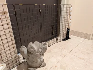 脱走(🐈⬛)防止(進入禁止⛔️) 進入禁止⛔️進入禁止⛔️ベランダは、特に危険⛔️ 既製のものは、ちょっと(?)高いので100均で、揃えてなんちゃって脱走進入禁止柵を我が家のニャンコ本気出すと、頭で小突きます😾